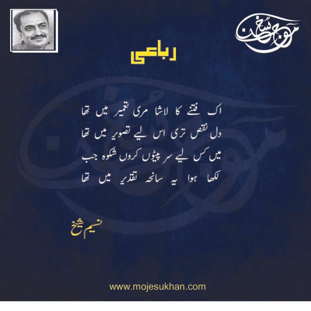 اک فتنے کا لاشا مری تعمیر میں تھا ۔۔۔۔۔۔۔ رباعی نسیم شیخ