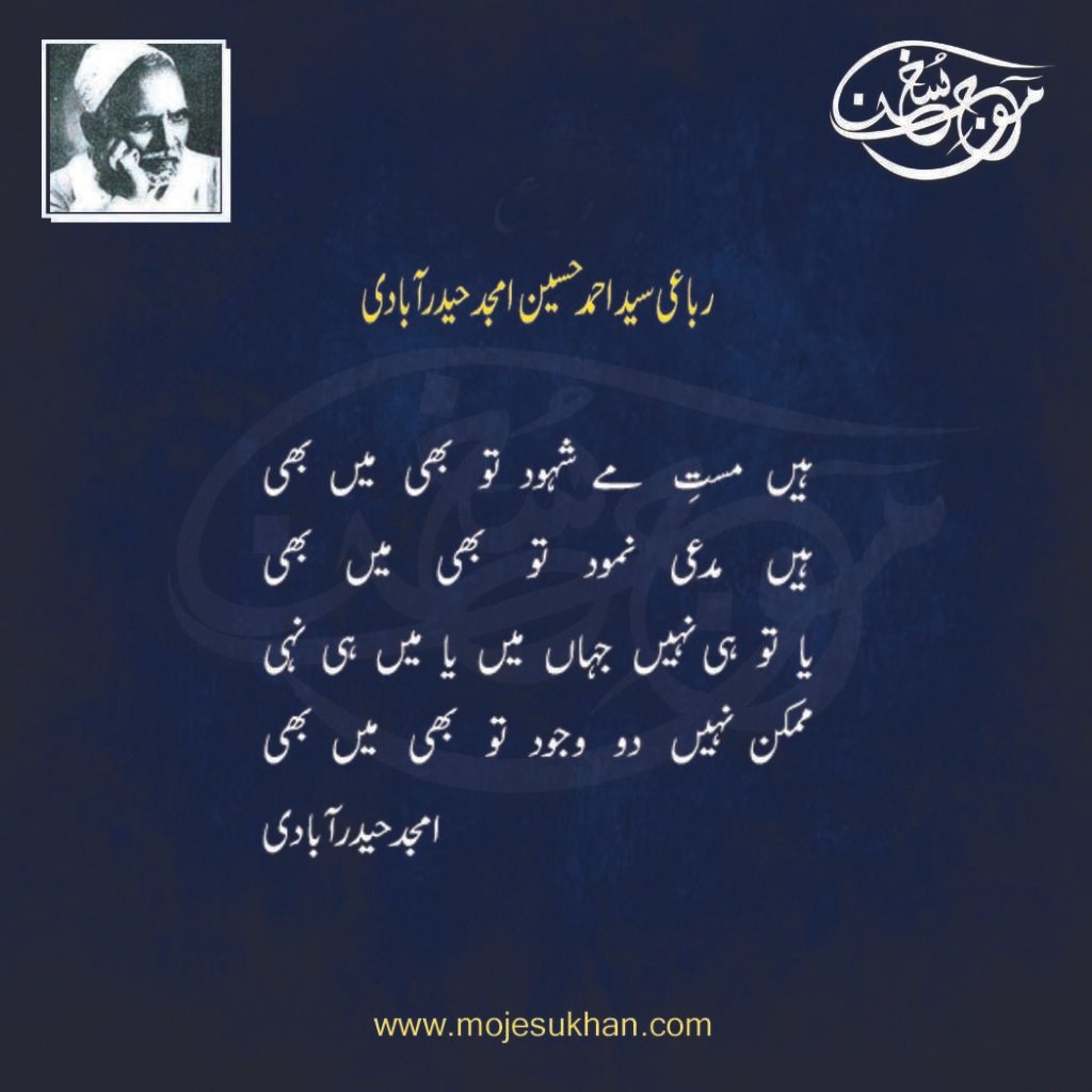 ہیں مستِ مے شہود تو بھی میں بھی ۔۔۔۔۔۔۔۔۔۔۔۔۔ رباعی امجد حیدرآبادی